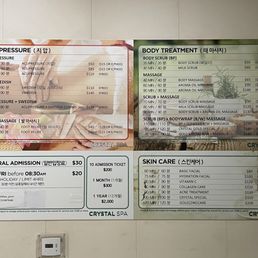 So I finally had the opportunity to visit Crystal Spa yesterday. Definitely a four star establishment because of its size and heat of the wet and dry sauna and hot tub. Really a great place to relax though! Be sure to park on P2 level for up to 6 hours of free parking with validation. My experience was similar to most of the other reviews: 1) very friendly and helpful staff. One of the men's treatment specialists was not only friendly with a pleasant and cheerful greeting, but he also was engaging with conversation as well; 2) clean and bright; 3) plenty of towels and Jjimjilbang uniforms; 4) delicious smelling food (didn't taste any though); 5) intimate (smallish) hot and cold pools; 6) very hot steam and dry sauna (at least too hot for this Caucasian man): The bathing/showering area is sufficiently large for standing or sitting showers. The Jimjillbang has four saunas of varying temperatures--very nice and a large communal area that is spacious. The smallness of the men's wet area is NOT a drawback for me because I like to experience the closeness and uniqueness of men bathing and relaxing in the saunas in the communal context of a Korean spa. Here Crystal is "spot on!" The clientele is vastly Korean from what I could tell and I felt very welcomed and accepted. Overall--wonderful. I will visit again and most likely see how the body scrub and massage work for me.